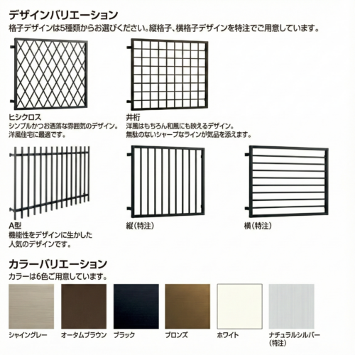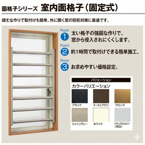 死角になりやすいキッチンや浴室の窓に安心を。高強度タイプから、外観を損なわないおしゃれなデザイン格子まで。